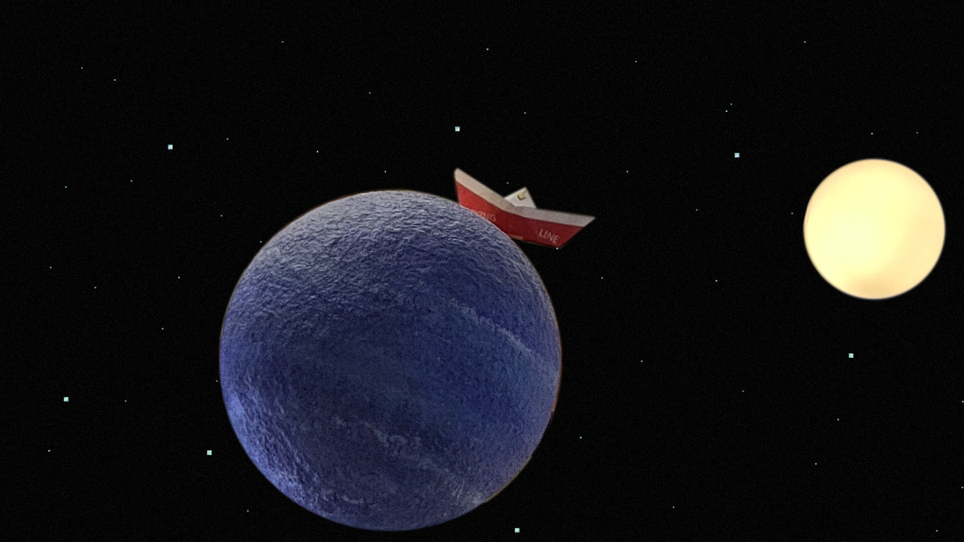 puhelinkameran kuvasta kämäsesti leikattu kuva joka sijoitettu avaruuteen GIMP-työkalulla hienosti muokkaamalla